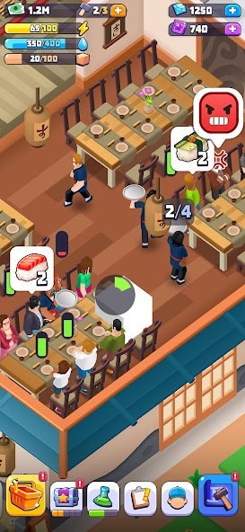 Ready to run your restaurant empire and collect the freshest ingredients to succeed? Sushi Empire Tycoon is an addictive and engaging mobile game that puts you in charge of your own virtual sushi restaurant. The game's unique idle gameplay mechanics allow you to progress even when you're away from the game, making it the perfect pick-up-and-play experience for busy players.The main goal is to build up your business empire by serving demanding customers delicious dishes like California rolls, sashimi, or maki rolls and grow by upgrading your restaurant and hiring talented staff members. You'll need to adapt your strategy to manage your working teams, deal with suppliers, and plant your own zero-mile ingredients in your garden to ensure you always have the freshest ingredients for your elaborations. And, of course, you’ll need a boat fleet to catch the best fish in the deep seas!You'll start small, with just a few basic meals and a simple setup, but as you progress, you'll unlock new recipes, like spicy tuna rolls and dragon rolls. You’ll also be able to customize and decorate your venue with exclusive items which will take your restaurant to the next level.The game features beautiful graphics and charming animations that bring your restaurant to life. You'll watch as customers sit down to enjoy your dishes, leaving them satisfied and eager to return. As you grow your business, you'll encounter new challenges that will test your management skills. But with each success, you'll feel the satisfaction of seeing your restaurant thrive.The game is easy to pick up and play, but its deep and challenging gameplay will keep you coming back for more. Sushi Empire Tycoon is a must-play whether you're a fan of idle games, tycoon games, or simply a sushi lover. With its fun storyline, addicting gameplay, and charming graphics, it's sure to be a hit with players of all ages. So why wait? Start building your sushi empire today!Main Features: - Casual and strategic gameplay for every player- Innovative mechanics: farm and fishing management and supply chain.- More detailed management system- Dozens of objects to be unlocked and upgraded- Lots of characters and interactions- Funny 3d graphics and great animations - Management of a successful business- A small living world in miniature